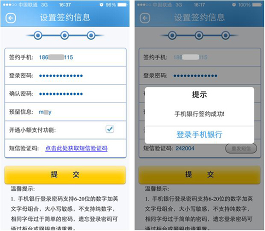 持3-10位字符,請使用普通而不是特殊字符;當您簽約手機號與在我行開戶時預留的手機號不相同時,則無法開通小額支付功能,請您確保手機號的一致性。